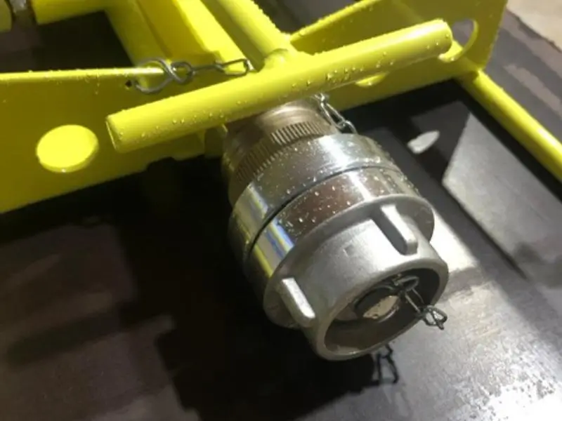 La nouvelle version du SprayJet est équipée d’un élément intermédiaire résistant au feu, qui maintient le tuyau sensible à la chaleur à distance du foyer d’incendie. Un tube robuste est installé entre le SprayJet et le tuyau afin de garantir une sécurité maximale. Des supports adaptés permettent de garder le tube toujours à portée de main.
